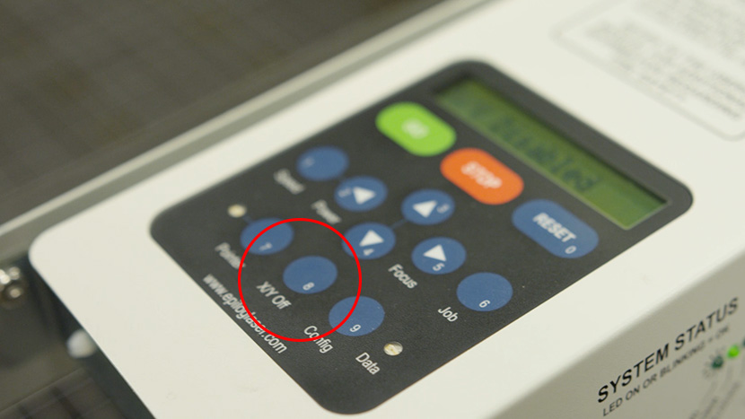 Press the X/Y Off button on the keypad then move the laser head to the front left corner of the machine.