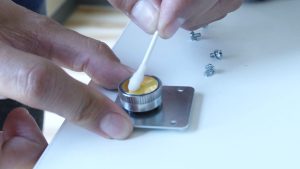 Install the alignment target into the lens carriage and place a small piece of masking tape over it.